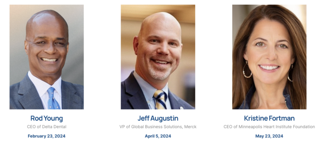 - May 23 (Thursday) – Kristine Fortman, CEO of Minneapolis Heart Institute Foundation