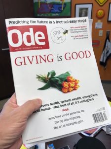 In 2011, one of my kids in college gave me a copy of Ode magazine with the headline: Giving is Good. It was an essential part of a class on world societies. While reading that issue, I vividly recall making the commitment to my purpose: to spread goodness through leaders. From that day on, I was determined to meet the founder and editor of the publication, Jurriaan Kamp.