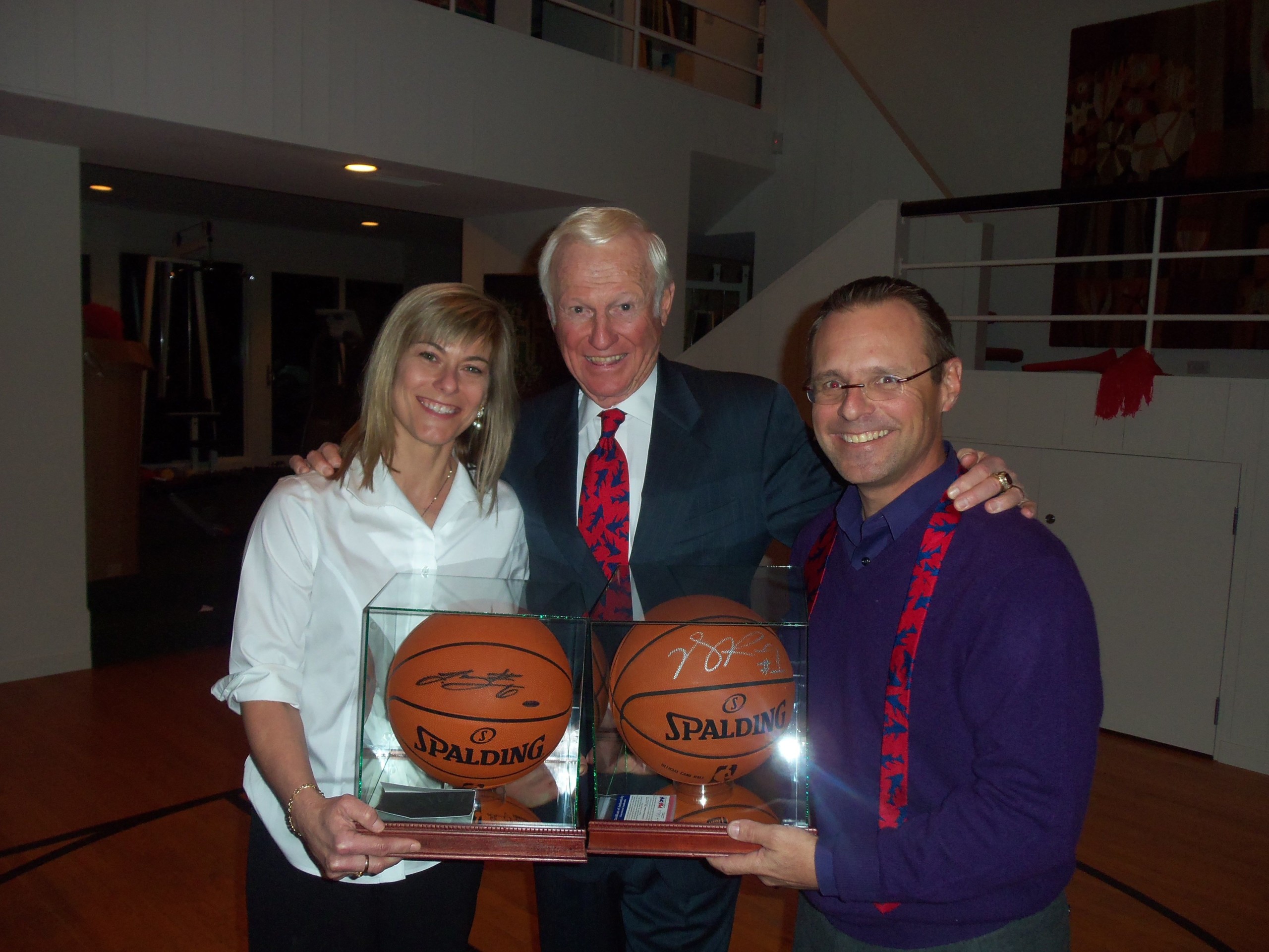 The irony of the evening is worth mentioning: the contest involved shooting Minnesota Gopher basketballs for the benefit of U of M scholarships. Alas! Two Gustavus grads took home the hardware! Heidi Rosati (class of 1988) and I (class of 1985) were the winners. I made four in a row to beat my pals Dave Horsager, Joe Schmidt and Sam Richter. Our prizes were autographed NBA playoff basketballs: Superstar Lebron James for Heidi, and the NBA’s Most Valuable Player, Derek Rose, for me. Sweet!