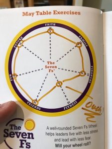 The Seven Fs Wheel is a central tool in how we teach leaders the fine art of intellectually honest self-reflection. Assessing our own satisfaction on our faith, family, finances, fitness, friends, fun, and future can produce powerful insights to stimulate renewal – if we pay attention. I think of the Seven Fs Wheel as an invitation to “Carpe diem” (Seize the day).