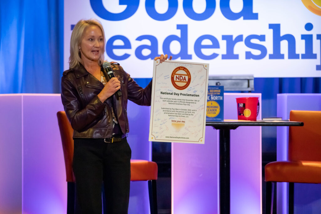 One of the highlights was provided by our friend and client Jennifer Myster, HealthPartners, who announced the news: the Good Leadership team worked with the National Archive Registry to secure and declare November 18 forevermore as National Goodness Pays Day. We are living our vision, isn’t that fun!