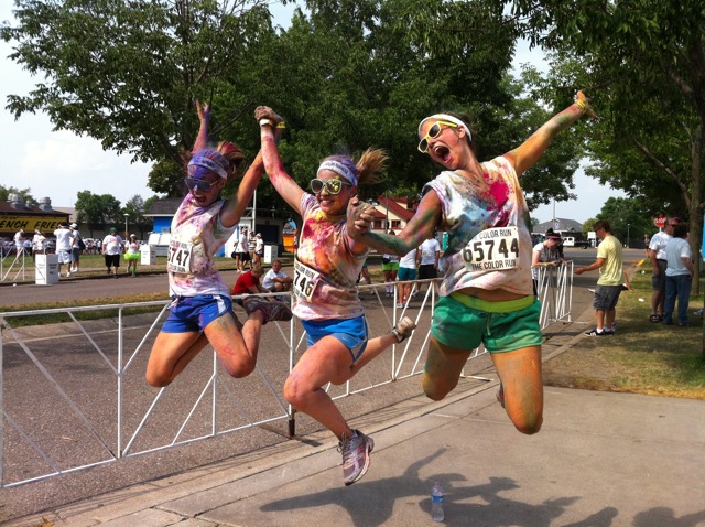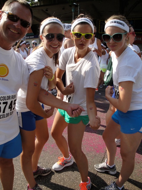 The Color Run is a national organization that coaxes wannabees of all shapes, ages and sizes into a musical, whimsical, color-powdered 3.1 mile fun run. They stage similar races all over the country. It’s growing by leaps and bounds, and they are sharing a portion of their profits with charity. No one worries about having a good time; because everyone is there to have a good time. Seven Fs everywhere. Carpe Diem!