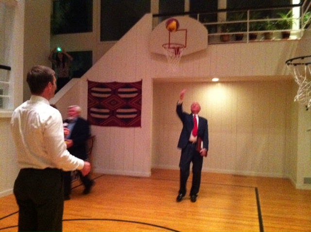 The appetizer course included a free-throw shooting contest (next to his living room!) where everyone was required to compete. No options out. I really admire the women dressed in high heels who were pressured into tossing three air balls in a row!