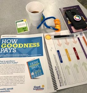 Last week was a whirlwind of travel, training, and coaching to spread goodness through good leaders. The week began with a global leadership team in Detroit, comprised of people from three different continents. Their mission is to transform the IT function in a business that needs business transformation to improve financial performance. And to restore pride in the brand. So…it’s not surprising they were interested in the core Goodness Pays idea: when people thrive together.