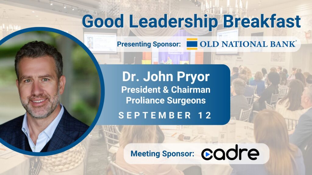 Just a few weeks away from launching the Fall 2025 Good Leadership Breakfast Series, and the team couldn’t be more excited about the first speaker: Dr. John Pryor, President and Chairman of Proliance Surgeons. His session on September 12 at the Metropolitan Ballroom in Minneapolis will set the tone for the season. With support of Presenting Sponsor, Old National Bank and Meeting Sponsor, Cadre, the Fall 2025 season is sure to be off to a fast start.